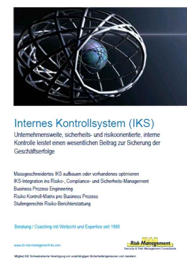 Die Broschüre stellt das Interne Kontrollsystem (IKS) als wesentliches Instrument zur Sicherung von Geschäftserfolgen vor. Sie beschreibt operationelle, finanzielle und regulatorische Ziele sowie die Umsetzung nach dem COSO-Modell. Das IKS umfasst Risikoanalyse, Kontrollaktivitäten und Berichterstattung und dient KMU wie Großunternehmen zur Steuerung wichtiger Risiken und Einhaltung rechtlicher Vorgaben.