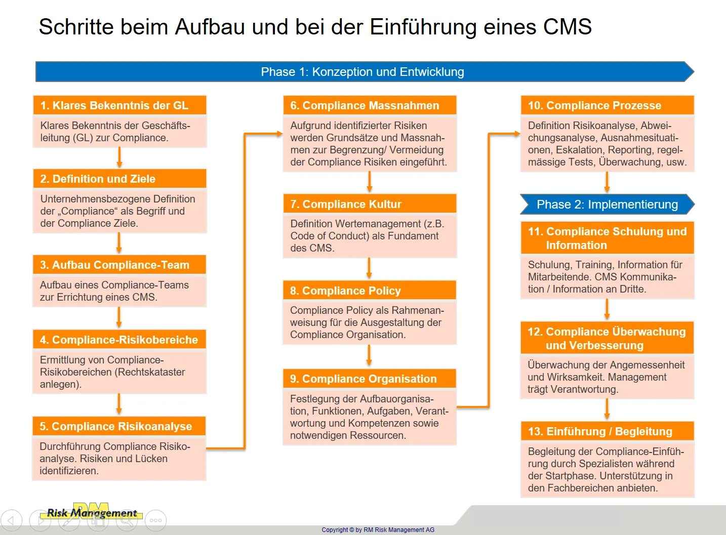 Dieses PDF beschreibt die Umsetzungsschritte für ein effektives Compliance Management System. Es stellt praxisorientierte Maßnahmen und Vorgehensweisen dar, um Compliance nachhaltig im Unternehmen zu verankern.