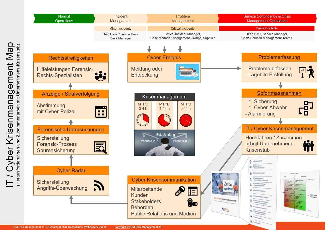 Cyber Krisenmanagement Map zeigt Abläufe und Massnah Cyber Krisenmanagement Map zeigt Abläufe und Massnahmen
